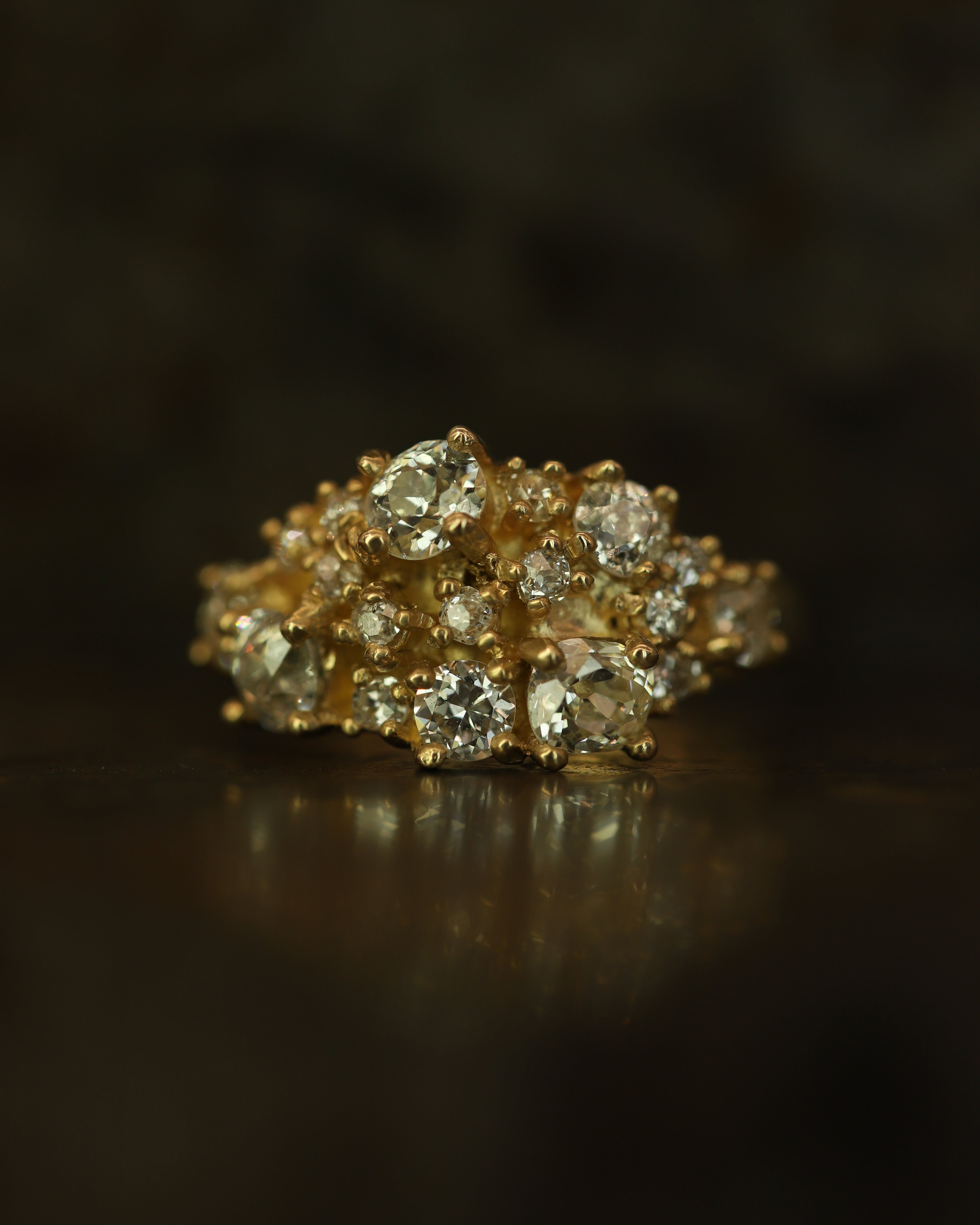 The X 1ct Old Cut Diamond Cluster Cocktail Ring is inspired by the medieval jewellery hoards which have been found across Scotland.